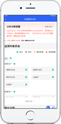 包括產品能效分析、區域能效分析、崗位能效分析等功能,從不同的層面對現場的生產耗能情況進行節能分析,找出其中的不合理之處。