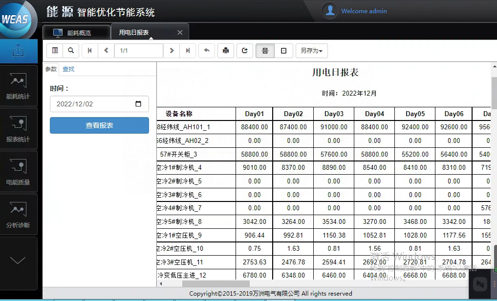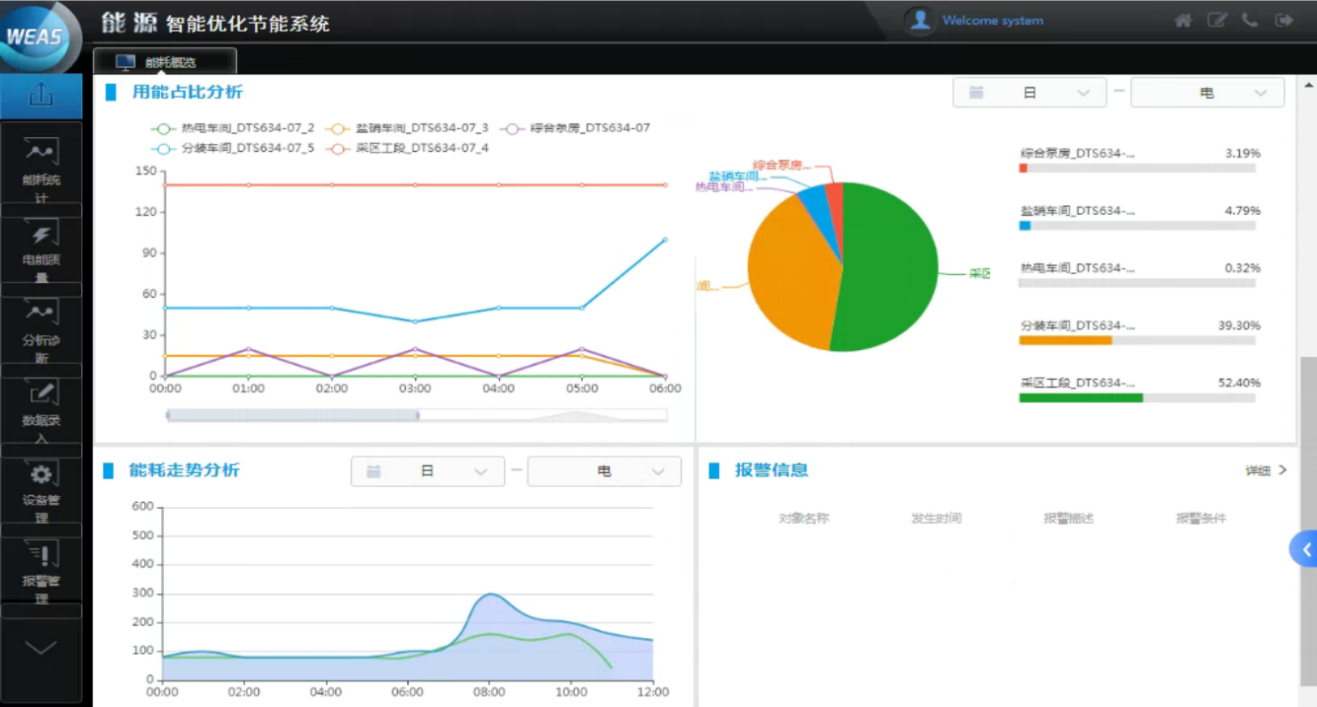 WEAS能源監測分析系統運行以來每年節約電費35萬元。具體節能效益如下:
