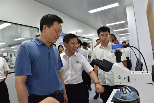 9:40分左右,在光電工廠一樓大廳,觀摩團領導首先觀看了光電工廠宣傳短片。隨后,在趙總的陪同下,王書記、王市長來到二樓光電元器件生產(chǎn)線,現(xiàn)場了解光電元器件固晶、焊線、整形等工序的生產(chǎn)工藝和流程。現(xiàn)代化的萬級潔凈生產(chǎn)車間、國內(nèi)領先的自動化、智能化光電產(chǎn)品生產(chǎn)線、5G鏈接全流程制程工藝技術……王書記不時駐足觀看,現(xiàn)場體驗光電產(chǎn)品紅外感應核心科技。趙總向王書記匯報了萬洲光電子產(chǎn)品的技術水平、市場領域和國內(nèi)前三甲的行業(yè)地位。在LED智慧照明生產(chǎn)線,觀摩團領導觀看了LED節(jié)能照明設備的生產(chǎn)流程,智慧節(jié)能燈具、橋梁隧道亮化工程、樓宇道路景觀亮化等應用場景絢爛多彩,讓觀摩團領導領略到云川之光和“襄陽造”的無限魅力。