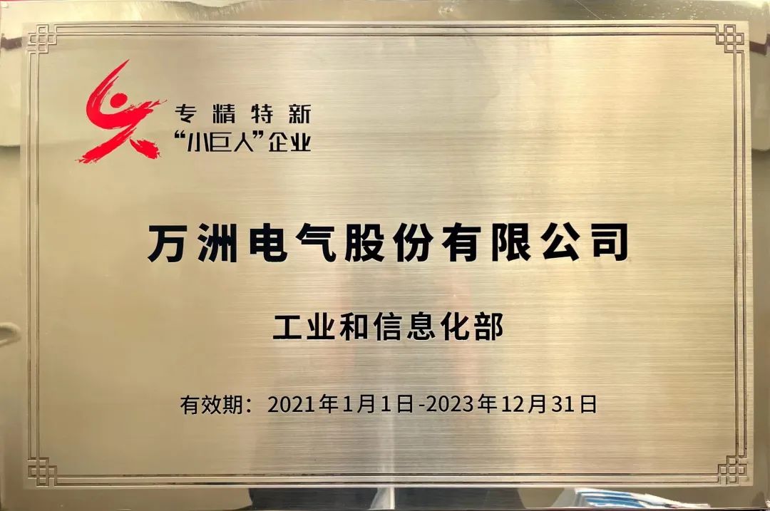 日前,國家工信部為國家級專精特新“小巨人”企業頒發獎牌,萬洲電氣被授牌。