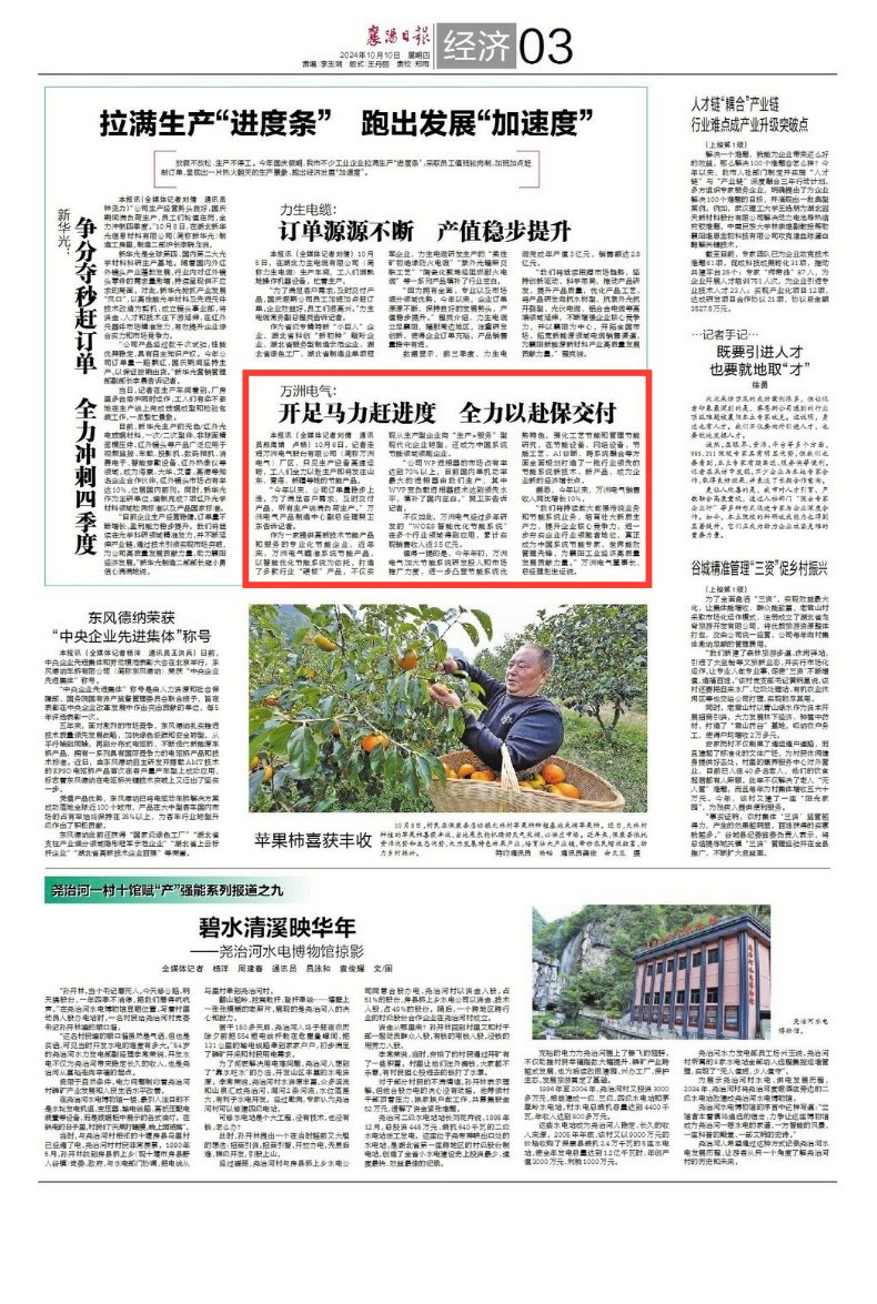 據(jù)悉,今年以來,萬洲電氣銷售收入同比增長10%。