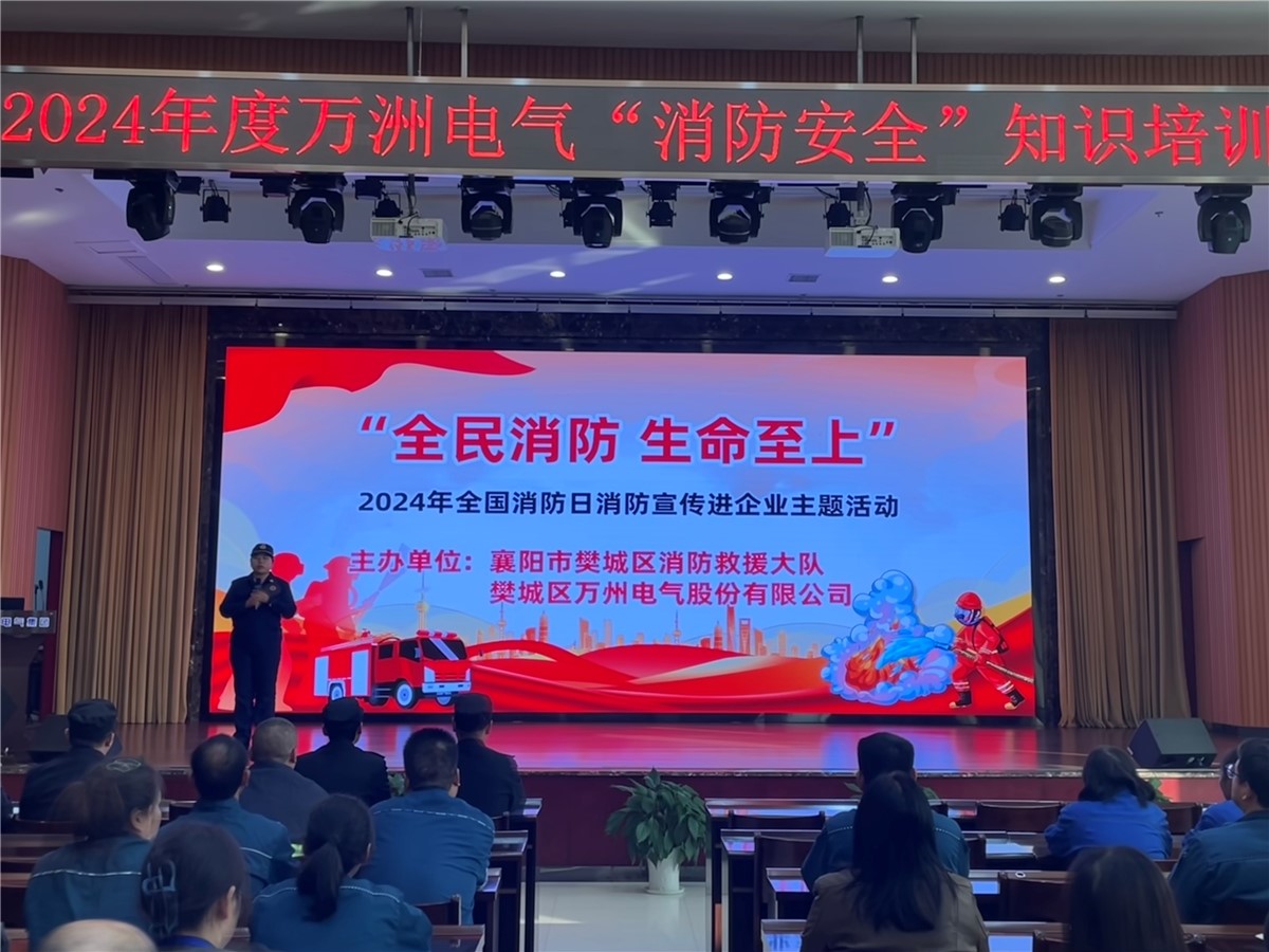 為增強(qiáng)員工消防意識(shí),提高員工突遇火災(zāi)等緊急情況的處置能力。11月8日下午,萬洲電氣專門邀請(qǐng)樊城區(qū)消防救援大隊(duì)到公司開展消防知識(shí)培訓(xùn)和救援演練活動(dòng),萬洲電氣、云川光電、萬洲機(jī)械、襄陽(yáng)工廠各部門安全員、班組長(zhǎng)、骨干等近五十人參加培訓(xùn)。