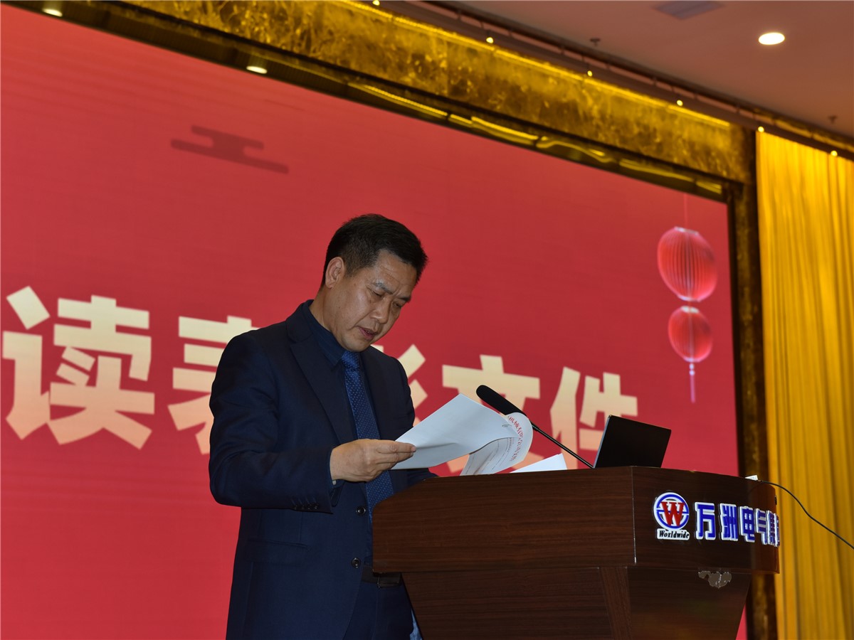 表彰先進,激揚精神。1月24日下午,萬洲集團2024年度總結(jié)表彰大會在一樓多功能廳隆重舉行。萬洲電氣、萬洲機械、云川光電、萬州光電襄陽工廠在家六百余名員工參加大會,武漢研發(fā)中心線上參會。萬洲電氣董事長、總經(jīng)理趙世運、萬洲電氣黨委書記、副總經(jīng)理李明輝、萬洲電氣副總經(jīng)理包群英、萬洲電氣市場營銷中心副總經(jīng)理李峰、云川光電總經(jīng)理趙邦國、珠海萬州光電總經(jīng)理嚴(yán)家良等領(lǐng)導(dǎo)出席會議。