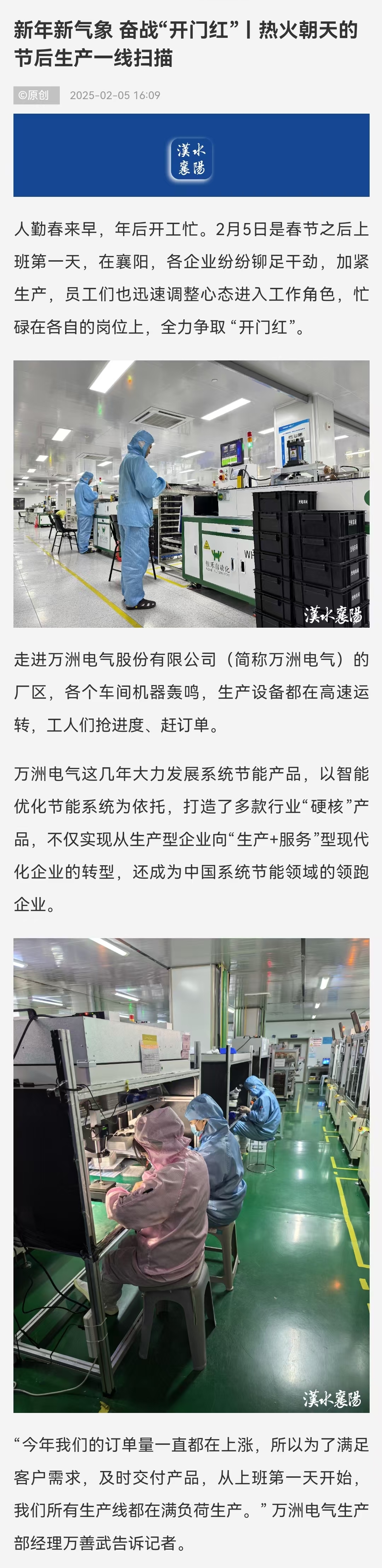 人勤春來早,年后開工忙。2月5日是春節(jié)之后上班第一天,在襄陽,各企業(yè)紛紛鉚足干勁,加緊生產(chǎn),員工們也迅速調(diào)整心態(tài)進(jìn)入工作角色,忙碌在各自的崗位上,全力爭取 “開門紅”。