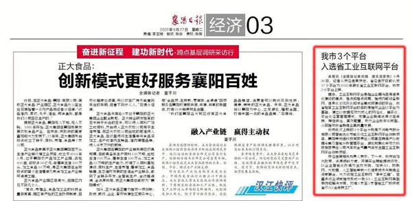 【襄陽日報】我市3個平臺入選省工業互聯網平臺