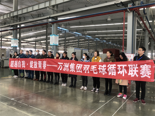 “萬洲集團‘超越自我·綻放青春’羽毛球循環聯賽決賽正式開始!”11月18日下午在萬洲機械車間,隨著萬洲團委書記金友愛的一聲令下,羽毛球聯賽決賽正式拉開帷幕。
