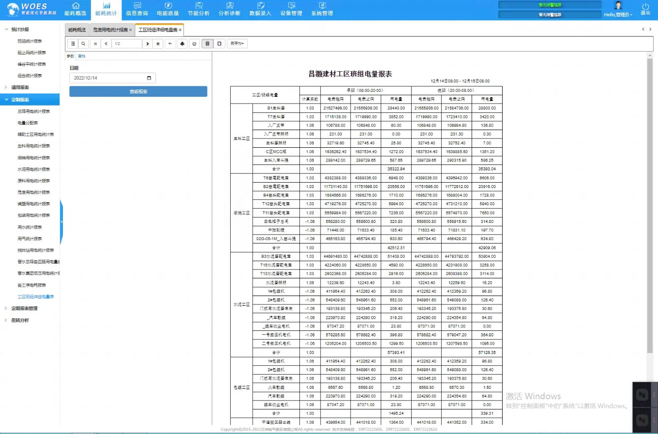 山西某建材有限公司于2017年成立,該公司有一條2500t/d生產(chǎn)線,全廠供電由兩臺10000kVA的變壓器(110kV/6kV)供給各個工段該,再通過配電系統(tǒng)向高壓電機、變壓器等設備供電,電力占企業(yè)的能源成本很大且電表數(shù)量多,該公司2019年8月部署了一套WOES智能優(yōu)化節(jié)能系統(tǒng)。